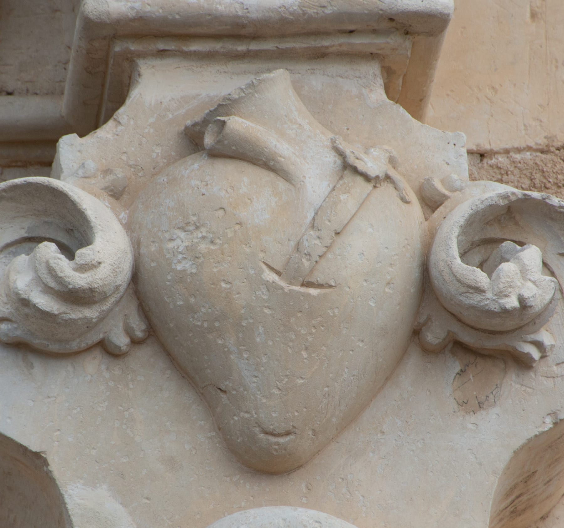 The heart is a symbol of love and devotion. A heart wounded or pierced with swords represents the Immaculate Heart of Mary and the sorrow she endured during her lifetime.