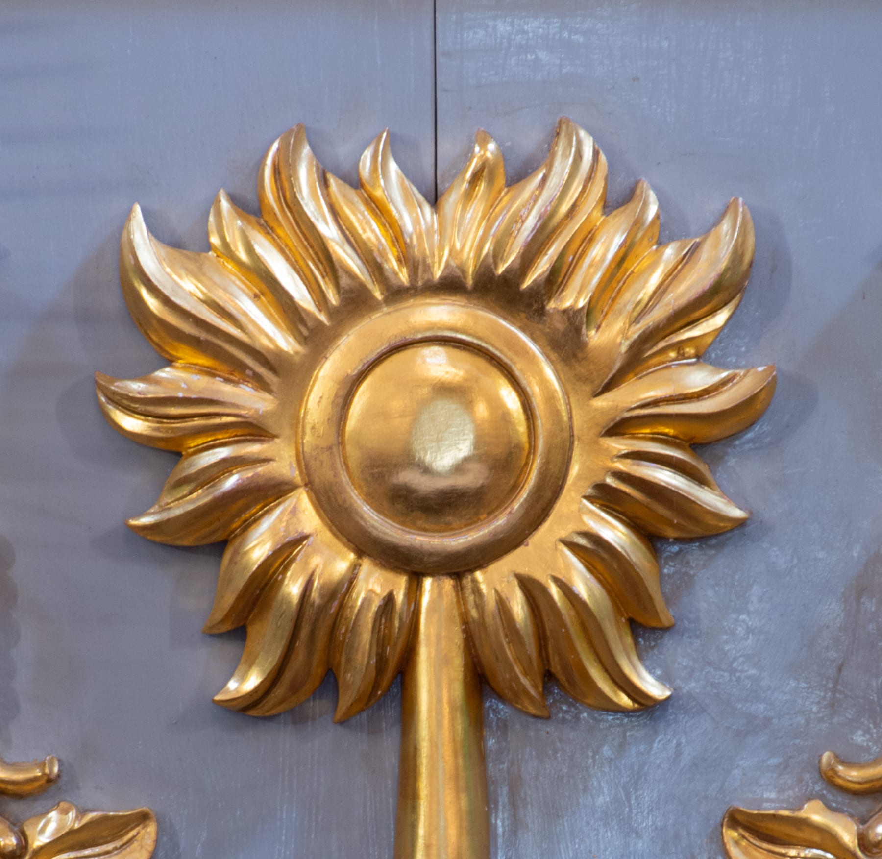 The rays shown emanating from the sun represent the Holy Spirit, God’s activity and presence, and His grace.